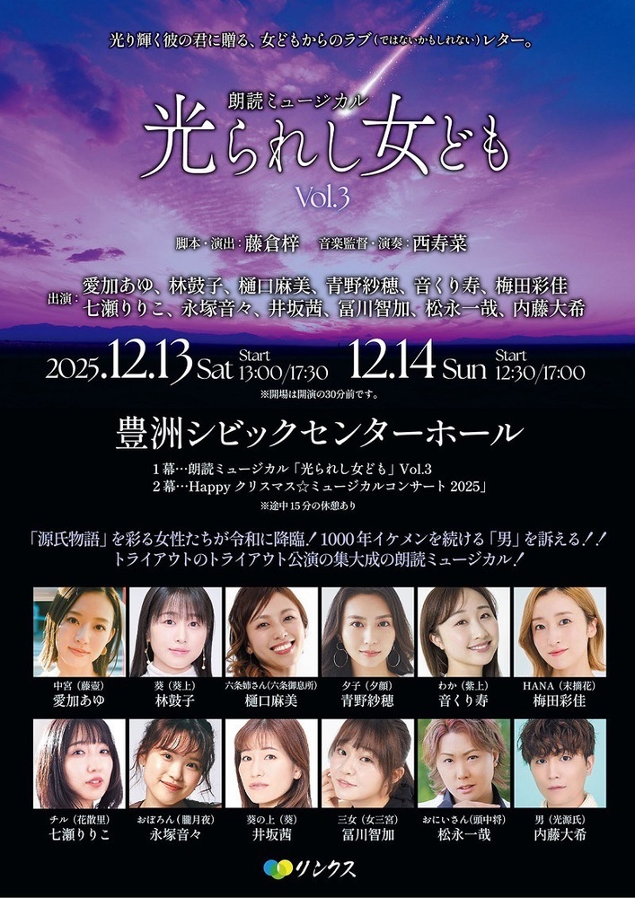 朗読ミュージカル「光られし女ども」Vol.3 、「Happy クリスマス☆ミュージカルコンサート2025」 の出演が決定