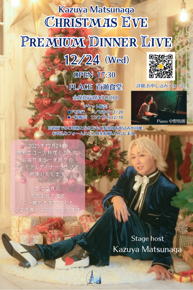 🎄Kazuya Matsunaga 🔔Christmas Eve Premium Dinner Live 2025🎁についてお知らせ
