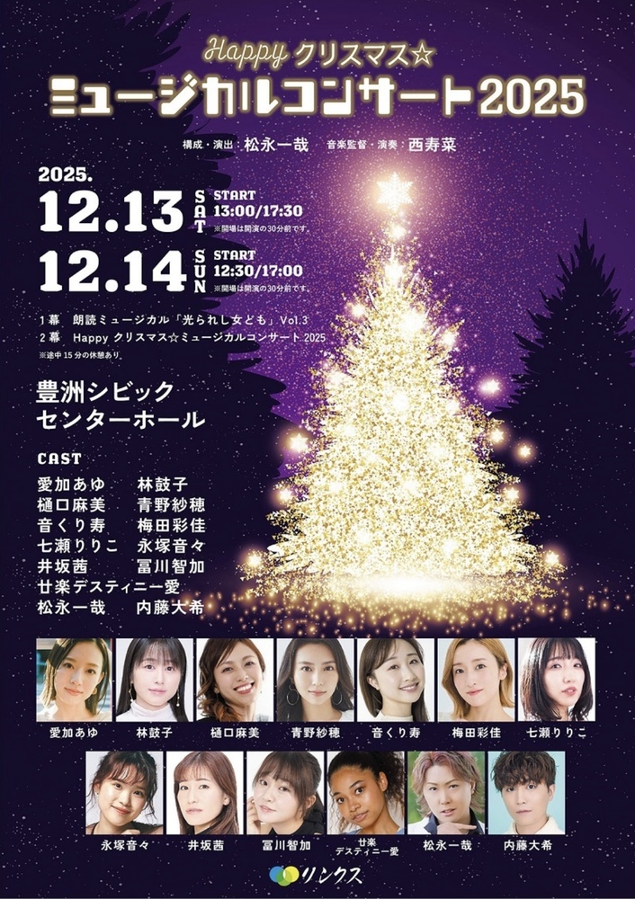 朗読ミュージカル「光られし女ども」Vol.3、「Happy クリスマス☆ミュージカルコンサート2025」に出演決定!!
